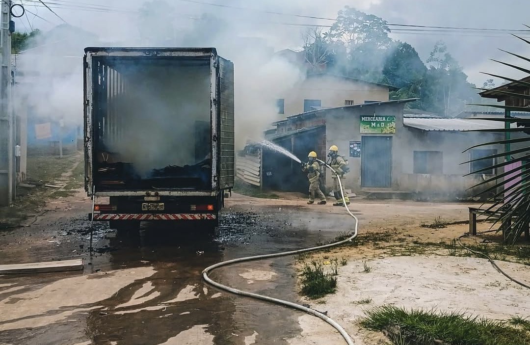 Caminhão de empresa de eletrodomésticos pega fogo em Cruzeiro do Sul e mobiliza Corpo de Bombeiros 29 de abril de 2025