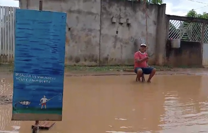 Bocalom venha pescar aqui com a gente: Morador convida prefeito para pescar em uma rua alagada e intrafegável 9 de dezembro de 2024