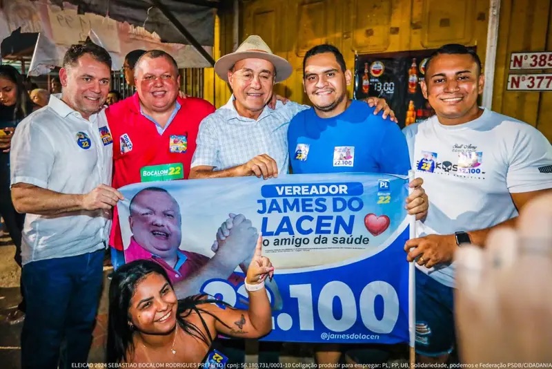 Em frente ao tradicional Bar do Santinho, Bocalom e Alysson participam de bandeiraço em apoio a James do Lacen 29 de agosto de 2024