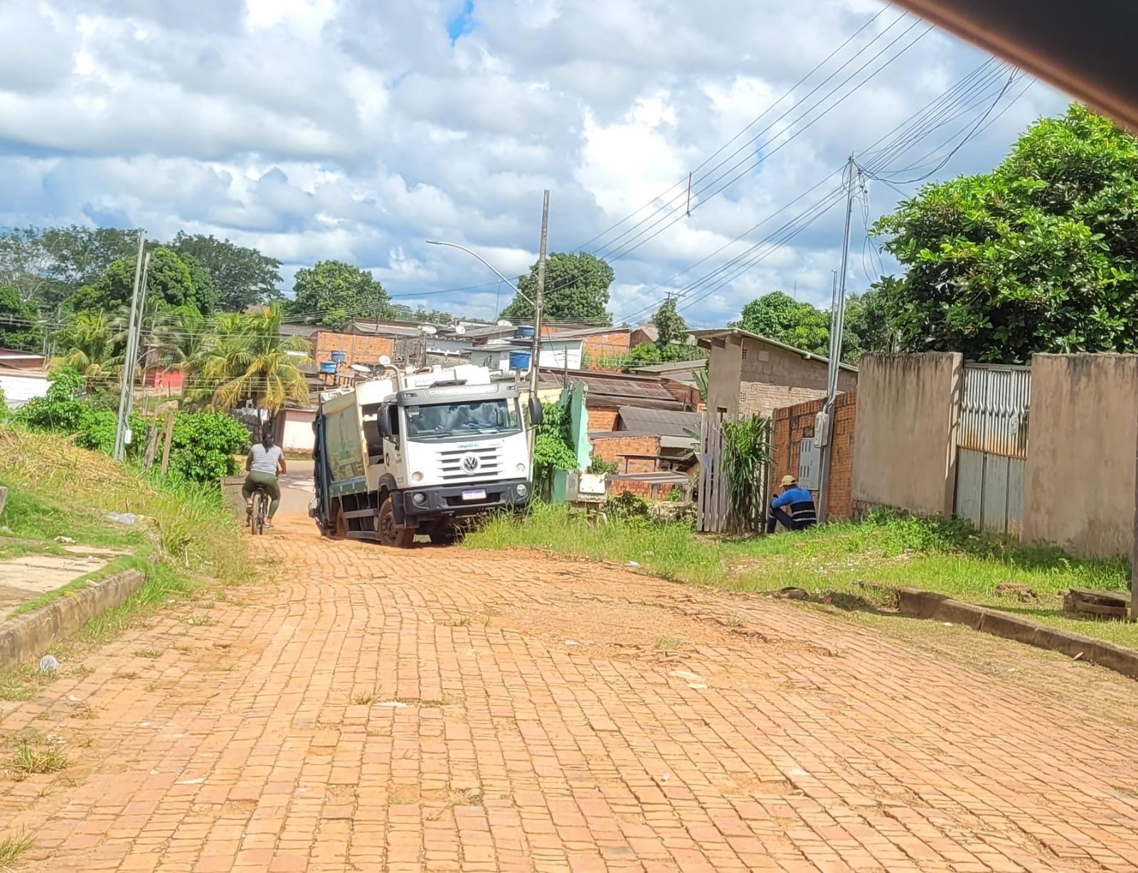 Ironia do destino: Caminhão de lixo fica preso em cratera na Rua Bandeirantes II, no bairro Tancredo Neves 26 de abril de 2024