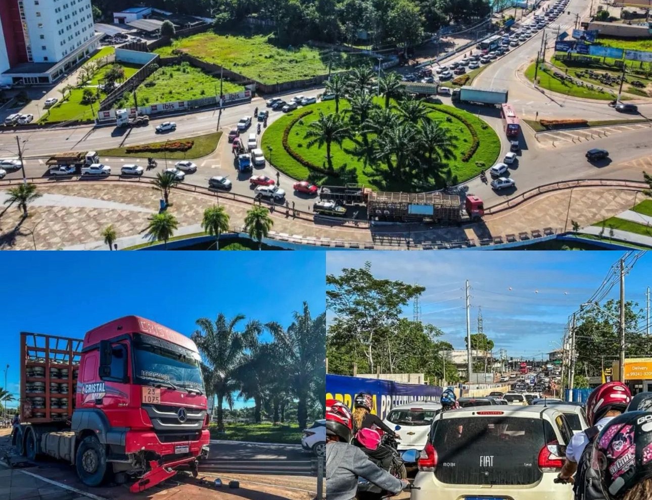 Carreta com carga de gás perde controle e fica presa em barra de proteção na rotatória em frente ao Lago do Amor 26 de abril de 2024